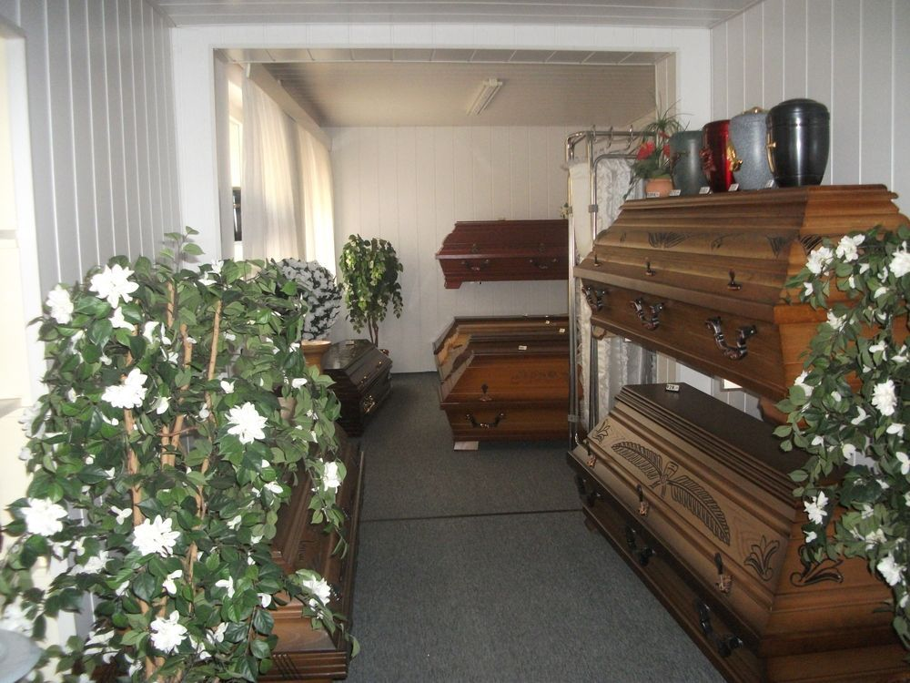 - umfangreiches Angebot von Särgen, Urnen und Sterbewäsche Anmeldung des Bestattungstermins