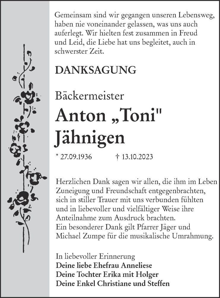 Hier finden Sie alle Traueranzeigen aus der Zeitung, die bisher für Anton Jähnigen erschienen sind. Weitere Traueranzeigen, die in der Zeitung erscheinen, werden hier ebenfalls aufgelistet