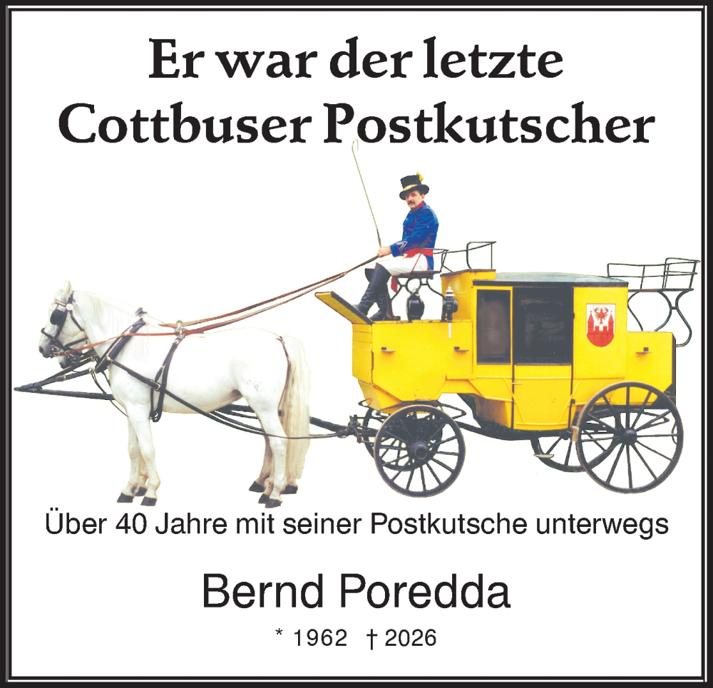 Hier finden Sie alle Traueranzeigen aus der Zeitung, die bisher für Bernd Poredda erschienen sind. Weitere Traueranzeigen, die in der Zeitung erscheinen, werden hier ebenfalls aufgelistet