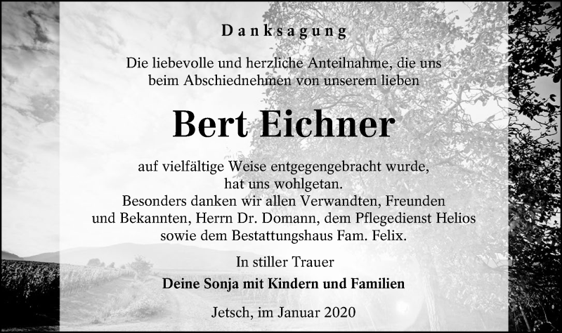 Hier finden Sie alle Traueranzeigen aus der Zeitung, die bisher für Bert Eichner erschienen sind. Weitere Traueranzeigen, die in der Zeitung erscheinen, werden hier ebenfalls aufgelistet