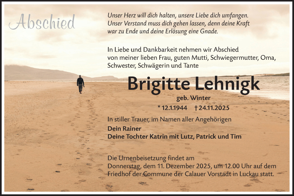 Hier finden Sie alle Traueranzeigen aus der Zeitung, die bisher für Brigitte Lehnigk erschienen sind. Weitere Traueranzeigen, die in der Zeitung erscheinen, werden hier ebenfalls aufgelistet