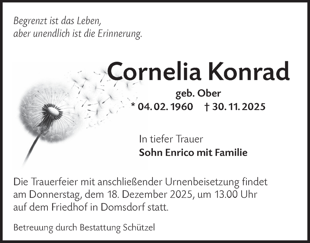 Hier finden Sie alle Traueranzeigen aus der Zeitung, die bisher für Cornelia Konrad erschienen sind. Weitere Traueranzeigen, die in der Zeitung erscheinen, werden hier ebenfalls aufgelistet