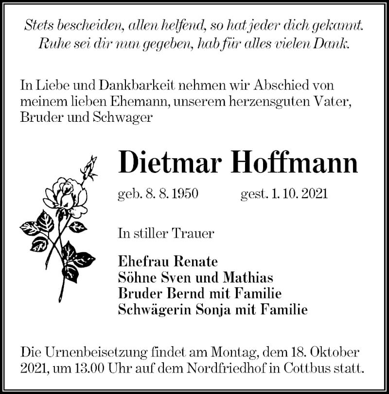 Hier finden Sie alle Traueranzeigen aus der Zeitung, die bisher für Dietmar Hoffmann erschienen sind. Weitere Traueranzeigen, die in der Zeitung erscheinen, werden hier ebenfalls aufgelistet