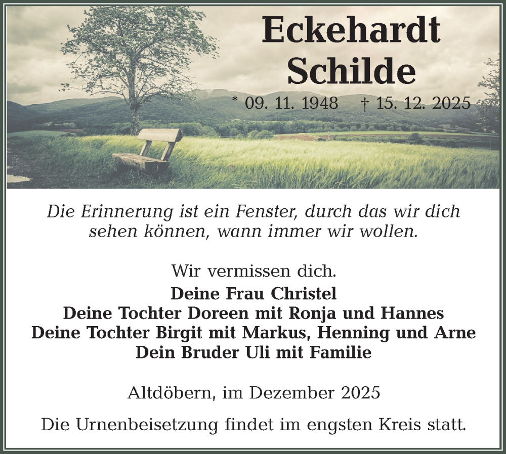 Hier finden Sie alle Traueranzeigen aus der Zeitung, die bisher für Eckehardt Schilde erschienen sind. Weitere Traueranzeigen, die in der Zeitung erscheinen, werden hier ebenfalls aufgelistet
