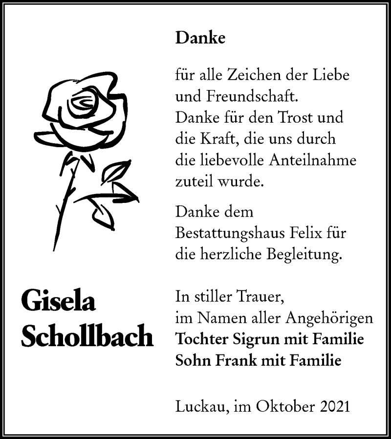 Hier finden Sie alle Traueranzeigen aus der Zeitung, die bisher für Gisela Schollbach erschienen sind. Weitere Traueranzeigen, die in der Zeitung erscheinen, werden hier ebenfalls aufgelistet
