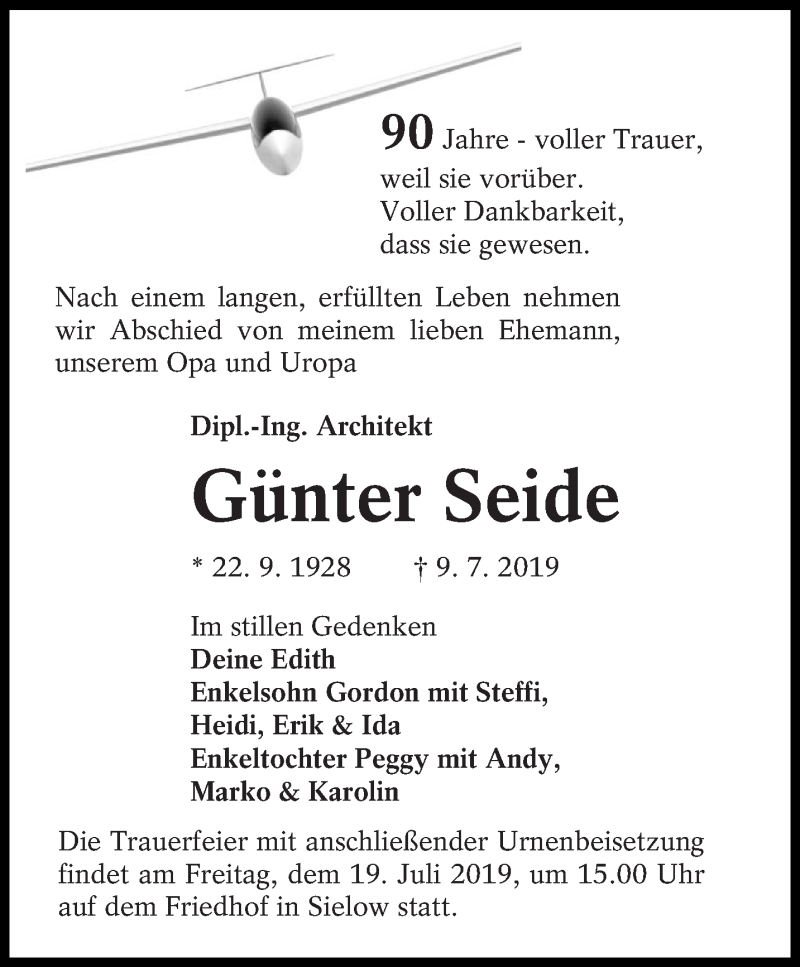 Hier finden Sie alle Traueranzeigen aus der Zeitung, die bisher für Günter Seide erschienen sind. Weitere Traueranzeigen, die in der Zeitung erscheinen, werden hier ebenfalls aufgelistet