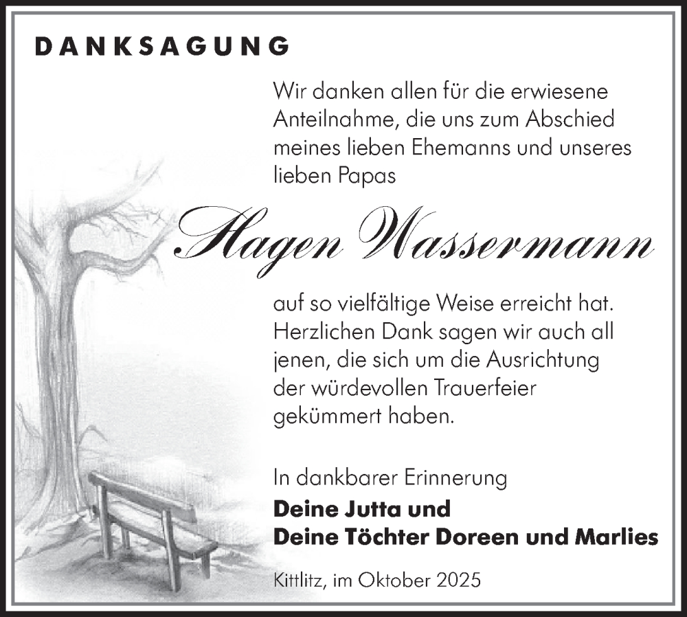 Hier finden Sie alle Traueranzeigen aus der Zeitung, die bisher für Hagen Wassermann erschienen sind. Weitere Traueranzeigen, die in der Zeitung erscheinen, werden hier ebenfalls aufgelistet