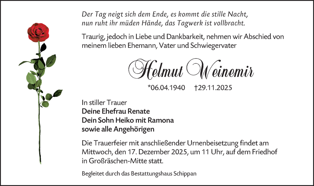 Hier finden Sie alle Traueranzeigen aus der Zeitung, die bisher für Helmut Weinemir erschienen sind. Weitere Traueranzeigen, die in der Zeitung erscheinen, werden hier ebenfalls aufgelistet