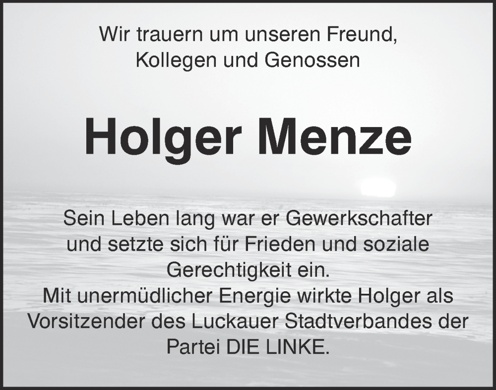 Hier finden Sie alle Traueranzeigen aus der Zeitung, die bisher für Holger Menze erschienen sind. Weitere Traueranzeigen, die in der Zeitung erscheinen, werden hier ebenfalls aufgelistet