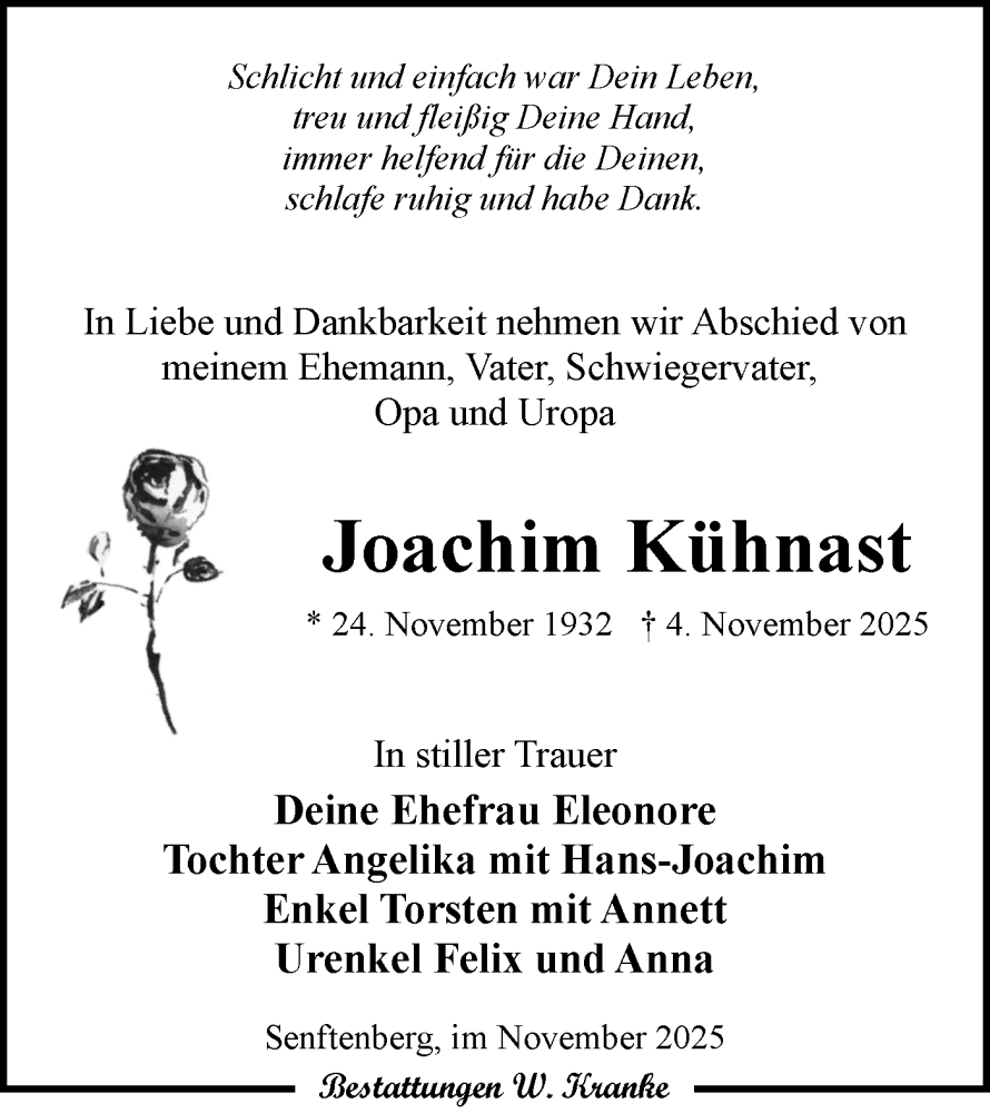Hier finden Sie alle Traueranzeigen aus der Zeitung, die bisher für Joachim Kühnast erschienen sind. Weitere Traueranzeigen, die in der Zeitung erscheinen, werden hier ebenfalls aufgelistet