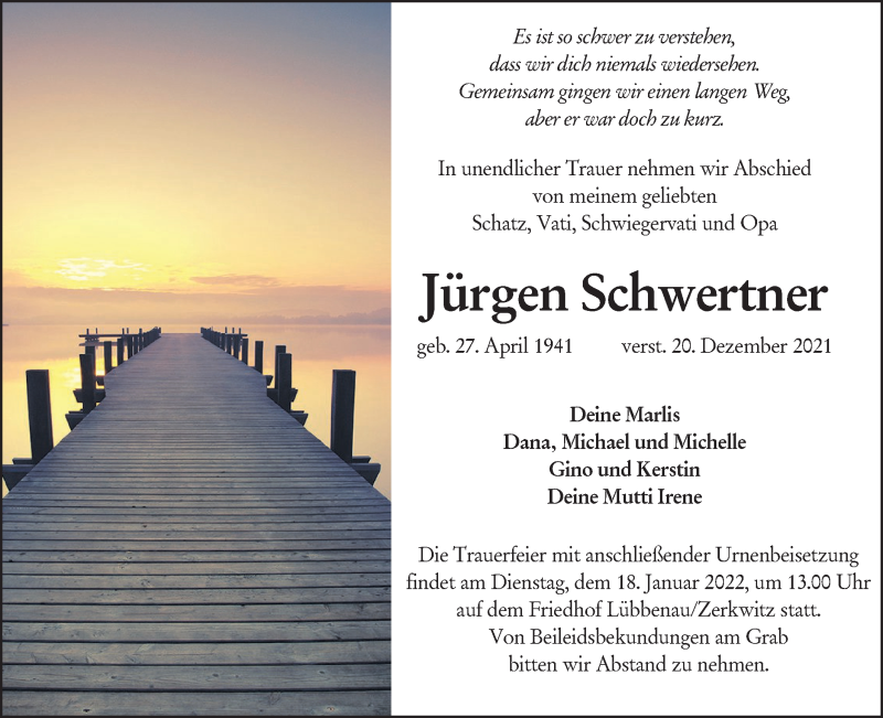 Hier finden Sie alle Traueranzeigen aus der Zeitung, die bisher für Jürgen Schwertner erschienen sind. Weitere Traueranzeigen, die in der Zeitung erscheinen, werden hier ebenfalls aufgelistet