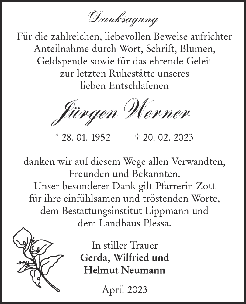 Hier finden Sie alle Traueranzeigen aus der Zeitung, die bisher für Jürgen Werner erschienen sind. Weitere Traueranzeigen, die in der Zeitung erscheinen, werden hier ebenfalls aufgelistet