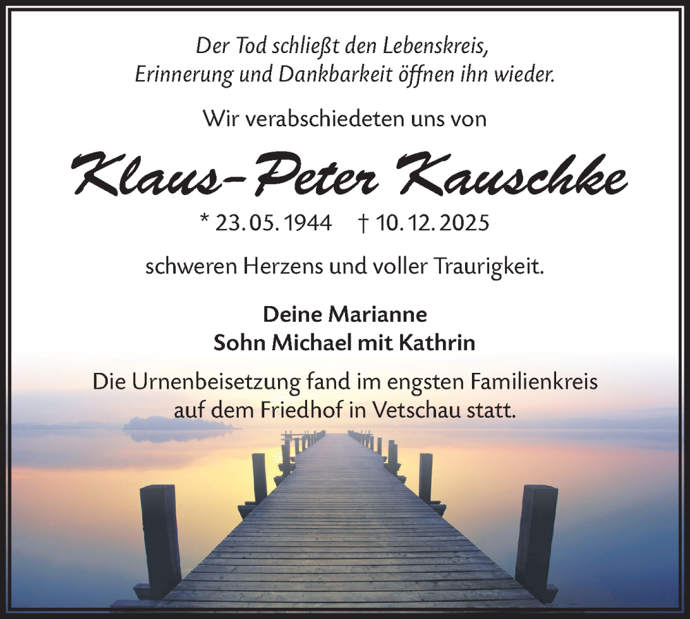Hier finden Sie alle Traueranzeigen aus der Zeitung, die bisher für Klaus-Peter Kauschke erschienen sind. Weitere Traueranzeigen, die in der Zeitung erscheinen, werden hier ebenfalls aufgelistet
