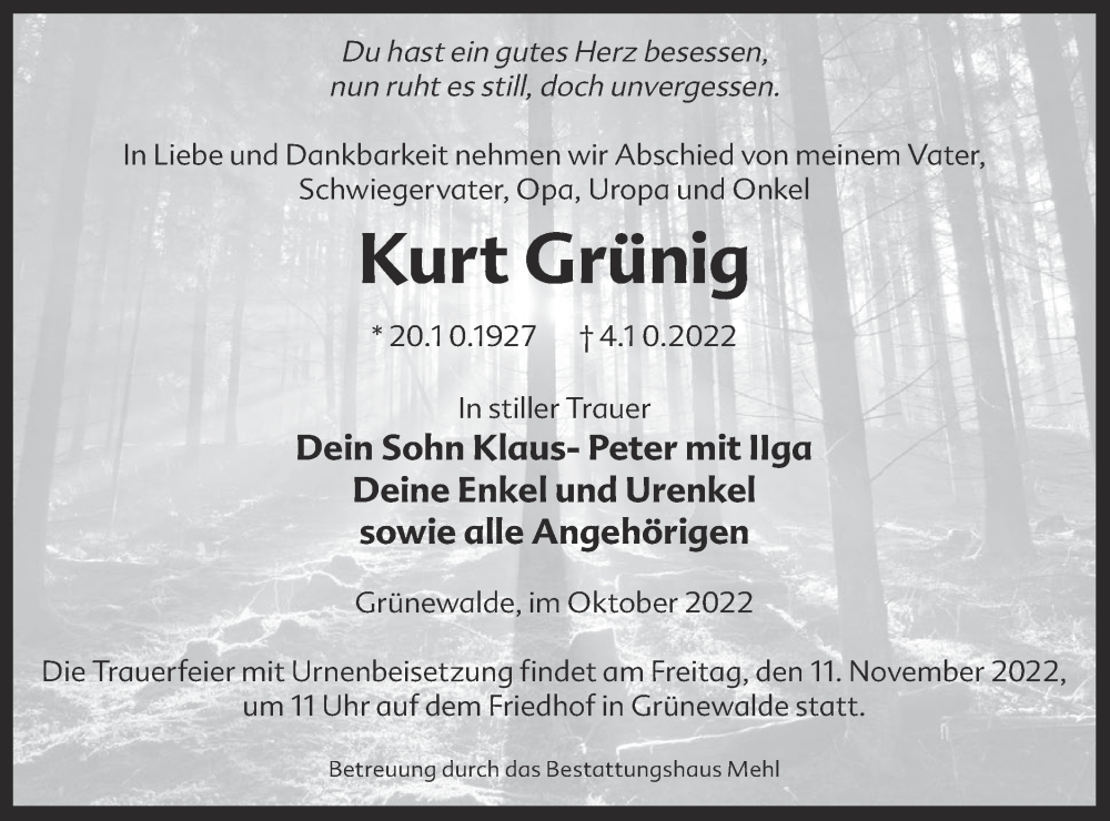 Hier finden Sie alle Traueranzeigen aus der Zeitung, die bisher für Kurt Grünig erschienen sind. Weitere Traueranzeigen, die in der Zeitung erscheinen, werden hier ebenfalls aufgelistet
