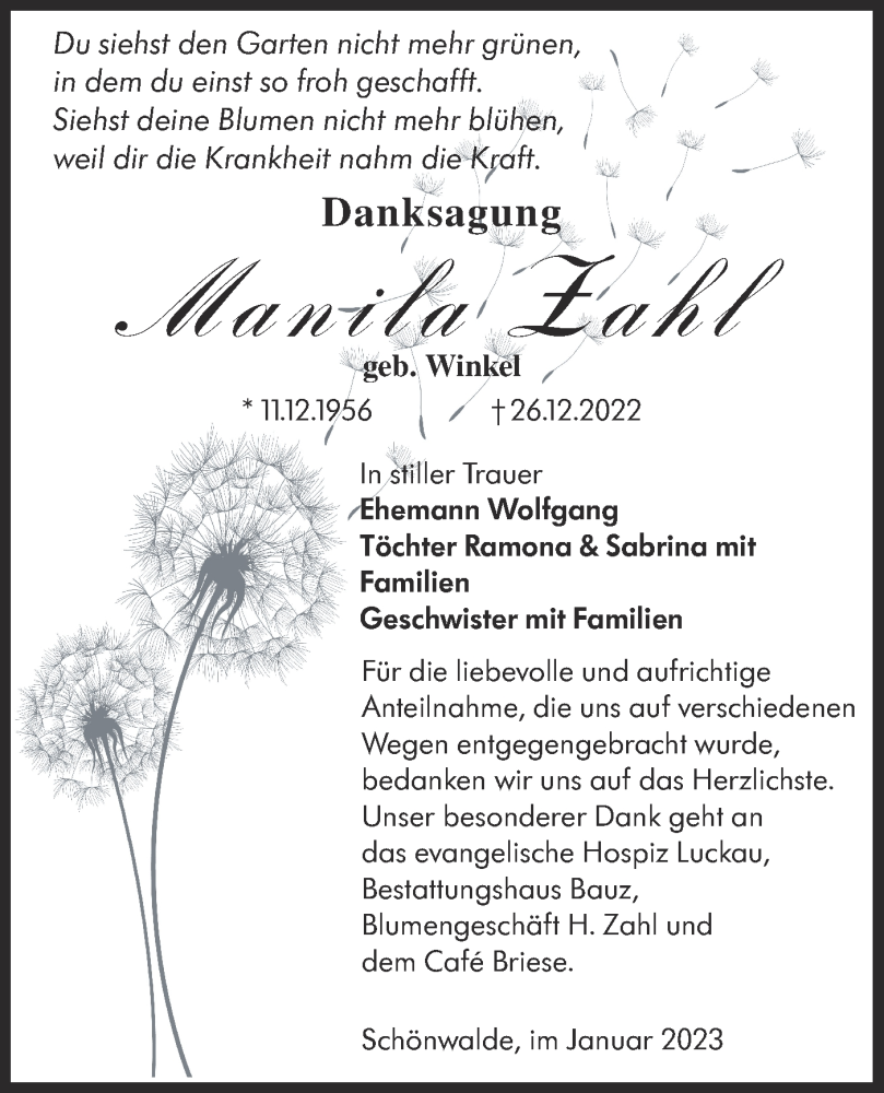 Hier finden Sie alle Traueranzeigen aus der Zeitung, die bisher für Manila Zahl erschienen sind. Weitere Traueranzeigen, die in der Zeitung erscheinen, werden hier ebenfalls aufgelistet