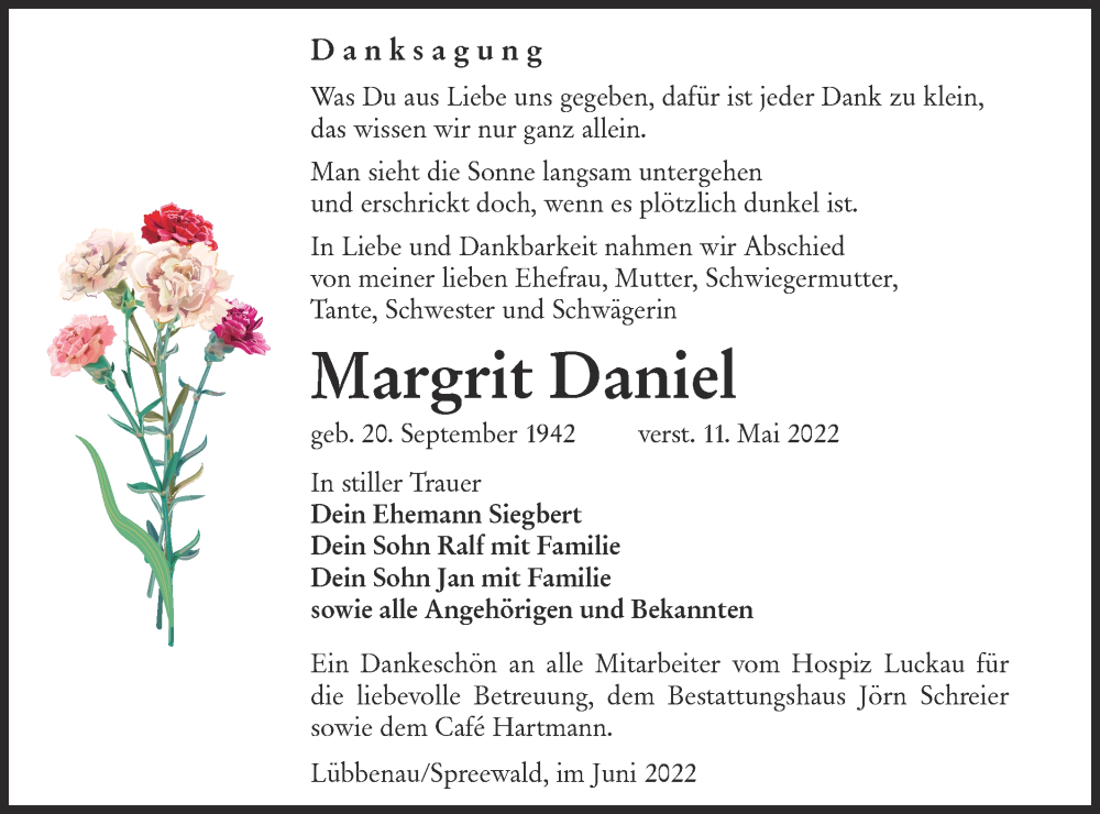 Hier finden Sie alle Traueranzeigen aus der Zeitung, die bisher für Margrit Daniel erschienen sind. Weitere Traueranzeigen, die in der Zeitung erscheinen, werden hier ebenfalls aufgelistet