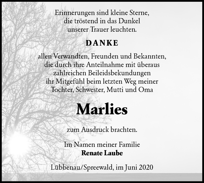 Hier finden Sie alle Traueranzeigen aus der Zeitung, die bisher für Marlies erschienen sind. Weitere Traueranzeigen, die in der Zeitung erscheinen, werden hier ebenfalls aufgelistet