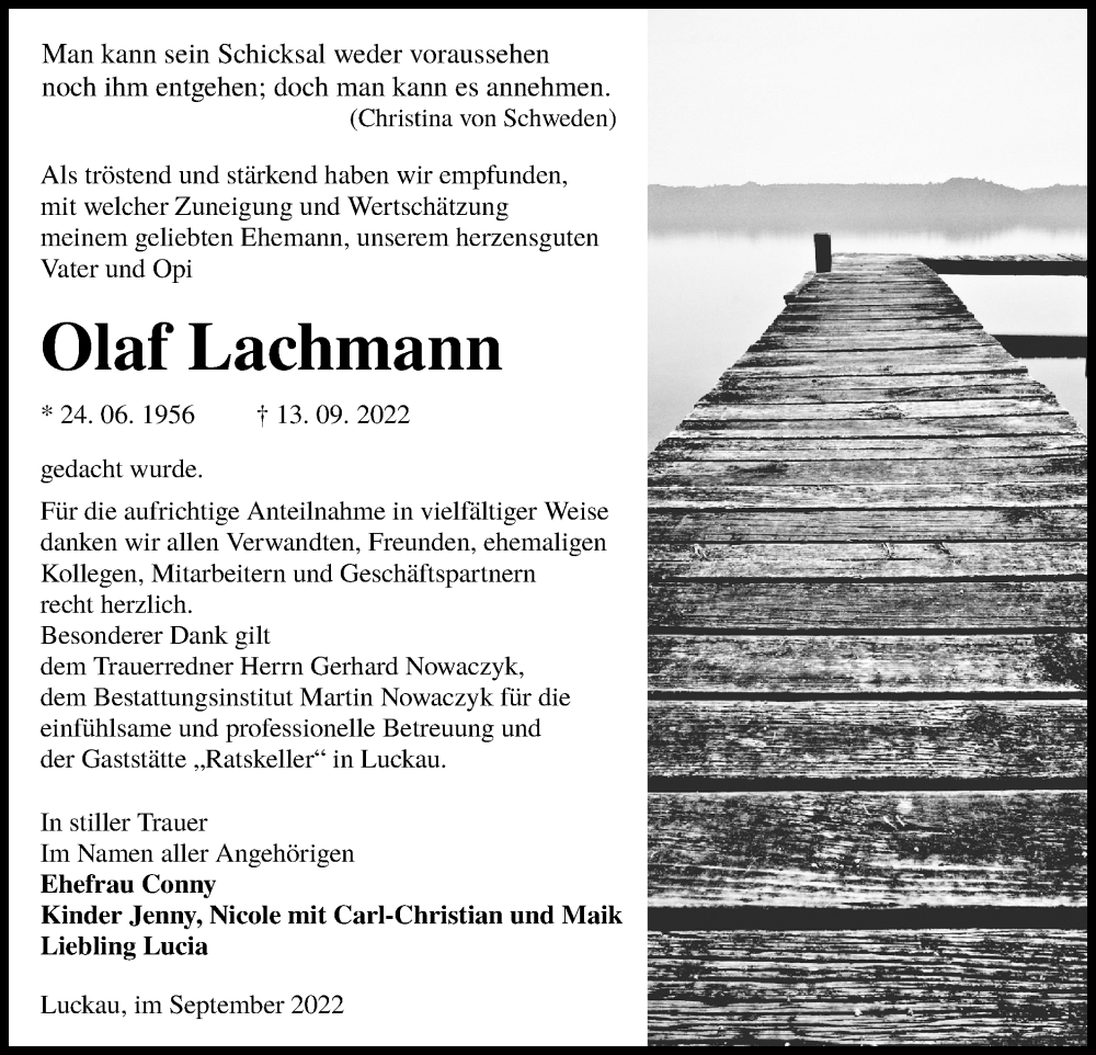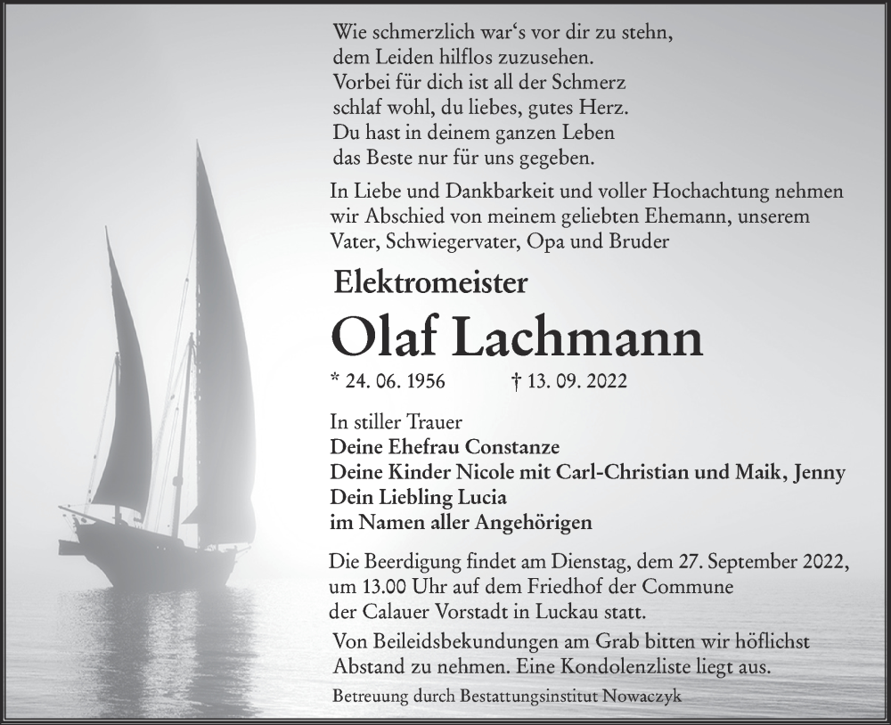 Hier finden Sie alle Traueranzeigen aus der Zeitung, die bisher für Olaf Lachmann erschienen sind. Weitere Traueranzeigen, die in der Zeitung erscheinen, werden hier ebenfalls aufgelistet