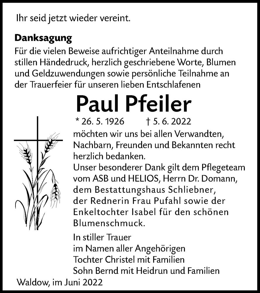Hier finden Sie alle Traueranzeigen aus der Zeitung, die bisher für Paul Pfeiler erschienen sind. Weitere Traueranzeigen, die in der Zeitung erscheinen, werden hier ebenfalls aufgelistet