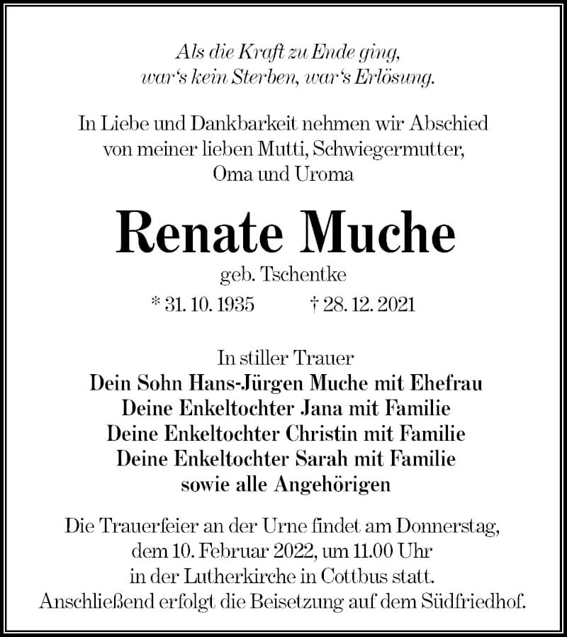 Hier finden Sie alle Traueranzeigen aus der Zeitung, die bisher für Renate Muche erschienen sind. Weitere Traueranzeigen, die in der Zeitung erscheinen, werden hier ebenfalls aufgelistet