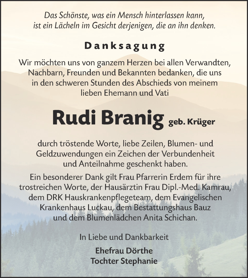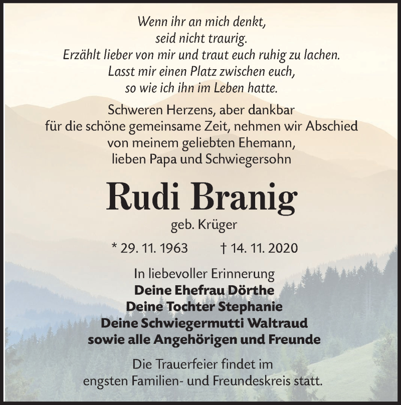 Hier finden Sie alle Traueranzeigen aus der Zeitung, die bisher für Rudi Branig erschienen sind. Weitere Traueranzeigen, die in der Zeitung erscheinen, werden hier ebenfalls aufgelistet