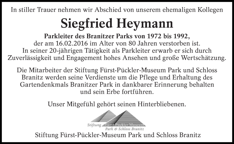 Hier finden Sie alle Traueranzeigen aus der Zeitung, die bisher für Siegfried Heymann erschienen sind. Weitere Traueranzeigen, die in der Zeitung erscheinen, werden hier ebenfalls aufgelistet