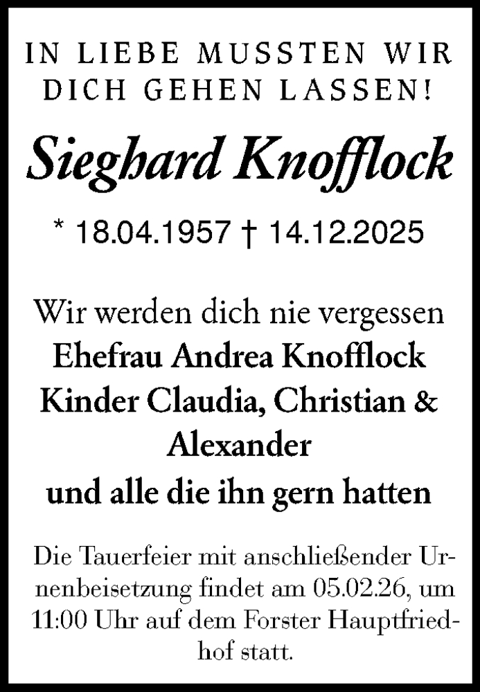 Hier finden Sie alle Traueranzeigen aus der Zeitung, die bisher für Sieghard Knofflock erschienen sind. Weitere Traueranzeigen, die in der Zeitung erscheinen, werden hier ebenfalls aufgelistet