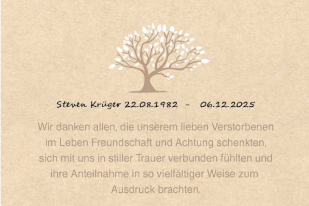 Hier finden Sie alle Traueranzeigen aus der Zeitung, die bisher für Steven Krüger erschienen sind. Weitere Traueranzeigen, die in der Zeitung erscheinen, werden hier ebenfalls aufgelistet