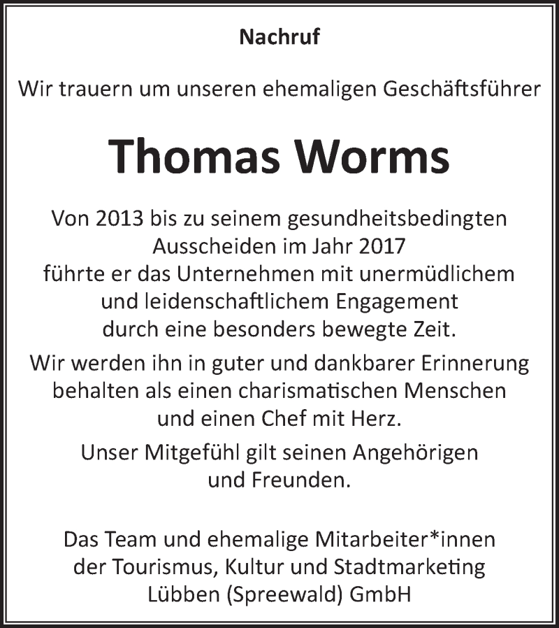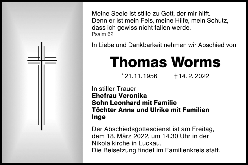 Hier finden Sie alle Traueranzeigen aus der Zeitung, die bisher für Thomas Worms erschienen sind. Weitere Traueranzeigen, die in der Zeitung erscheinen, werden hier ebenfalls aufgelistet