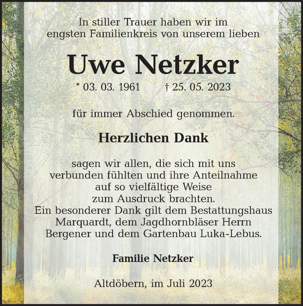 Hier finden Sie alle Traueranzeigen aus der Zeitung, die bisher für Uwe Netzker erschienen sind. Weitere Traueranzeigen, die in der Zeitung erscheinen, werden hier ebenfalls aufgelistet