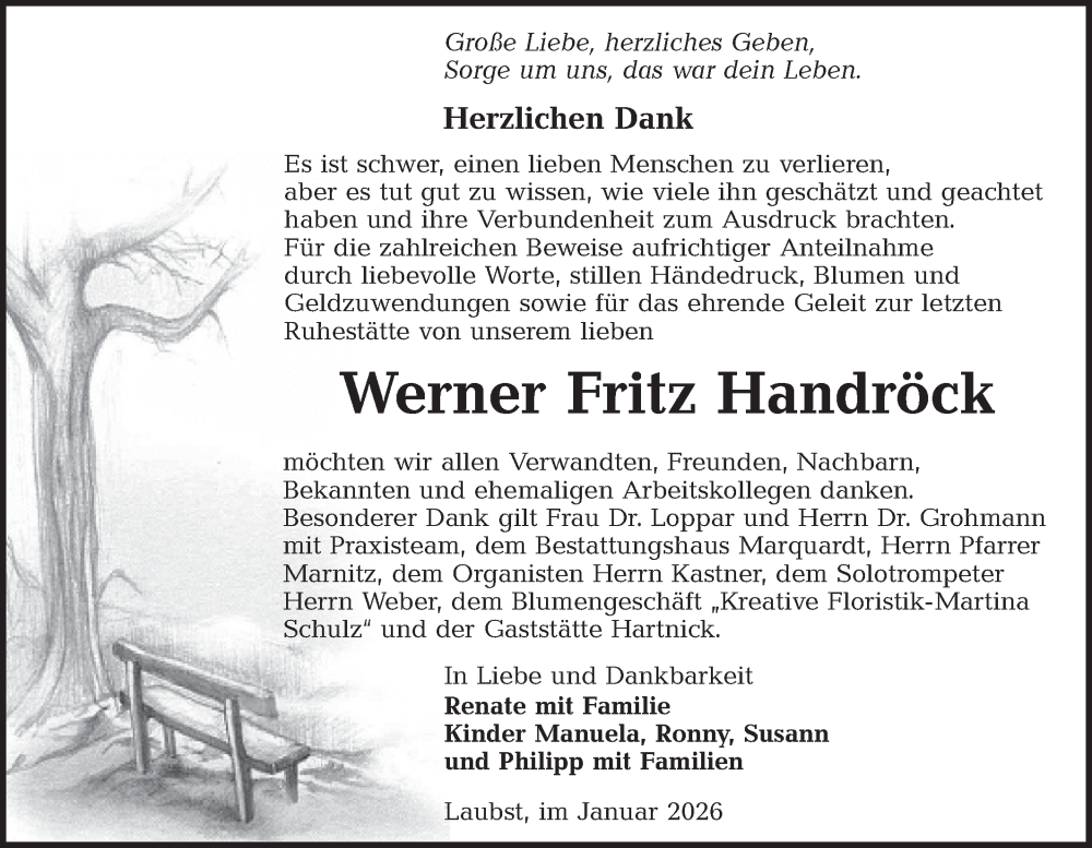 Hier finden Sie alle Traueranzeigen aus der Zeitung, die bisher für Werner Fritz Handröck erschienen sind. Weitere Traueranzeigen, die in der Zeitung erscheinen, werden hier ebenfalls aufgelistet