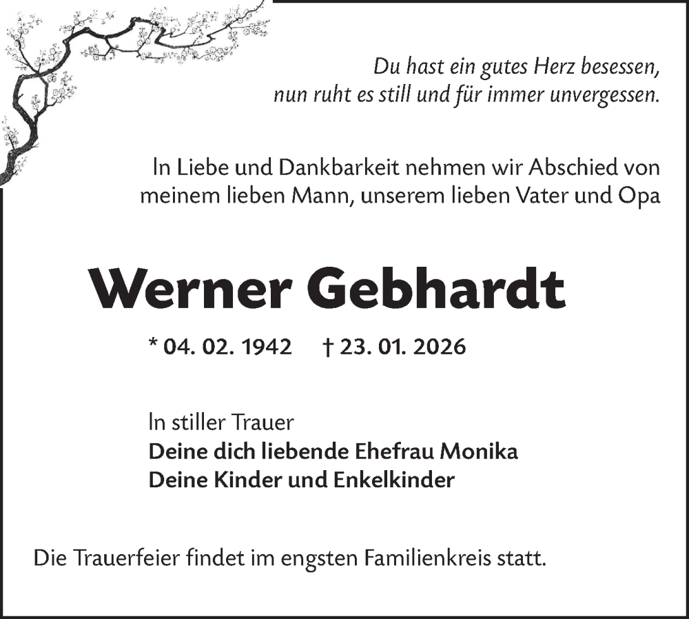 Hier finden Sie alle Traueranzeigen aus der Zeitung, die bisher für Werner Gebhardt erschienen sind. Weitere Traueranzeigen, die in der Zeitung erscheinen, werden hier ebenfalls aufgelistet