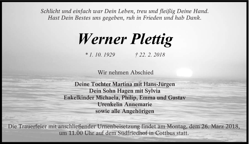 Hier finden Sie alle Traueranzeigen aus der Zeitung, die bisher für Werner Plettig erschienen sind. Weitere Traueranzeigen, die in der Zeitung erscheinen, werden hier ebenfalls aufgelistet