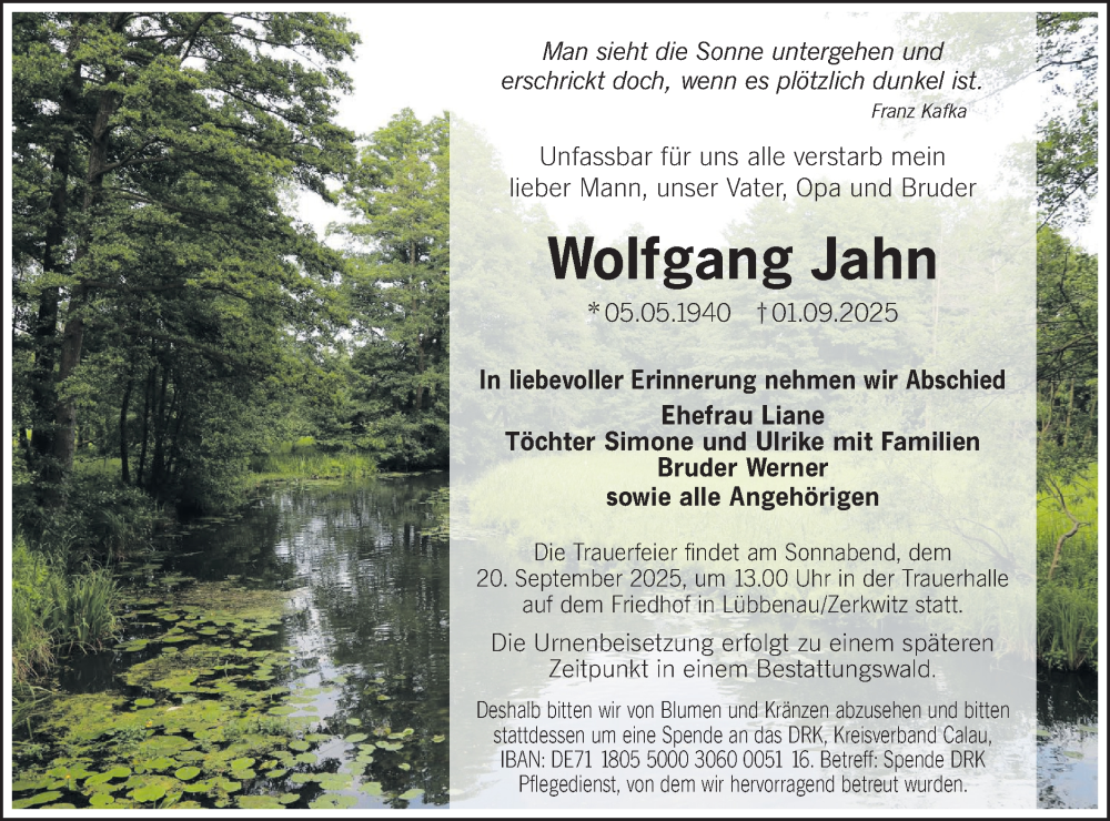Hier finden Sie alle Traueranzeigen aus der Zeitung, die bisher für Wolfgang Jahn erschienen sind. Weitere Traueranzeigen, die in der Zeitung erscheinen, werden hier ebenfalls aufgelistet