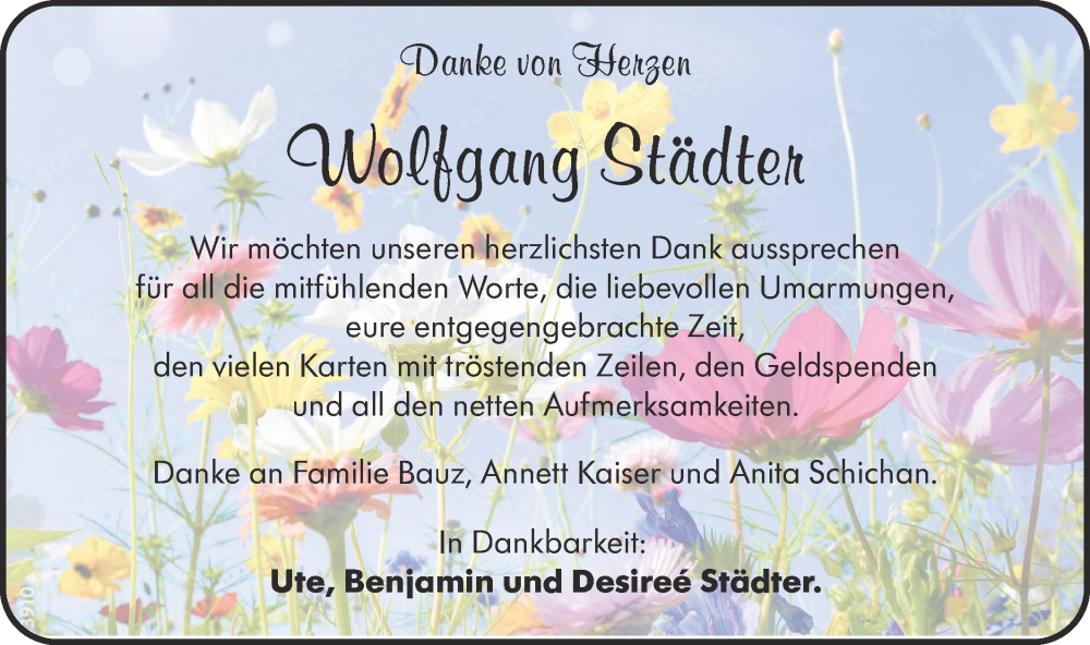 Hier finden Sie alle Traueranzeigen aus der Zeitung, die bisher für Wolfgang Städter erschienen sind. Weitere Traueranzeigen, die in der Zeitung erscheinen, werden hier ebenfalls aufgelistet