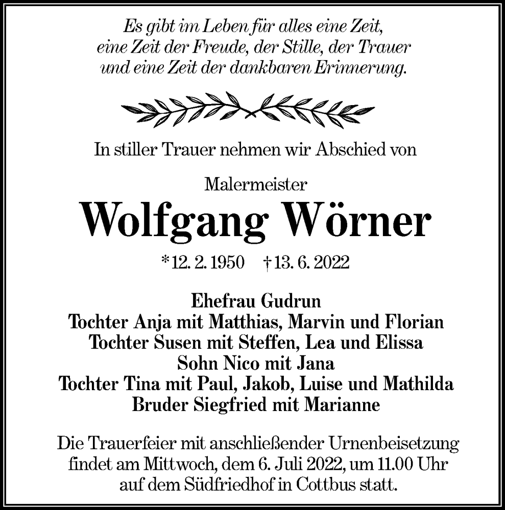 Hier finden Sie alle Traueranzeigen aus der Zeitung, die bisher für Wolfgang Wörner erschienen sind. Weitere Traueranzeigen, die in der Zeitung erscheinen, werden hier ebenfalls aufgelistet